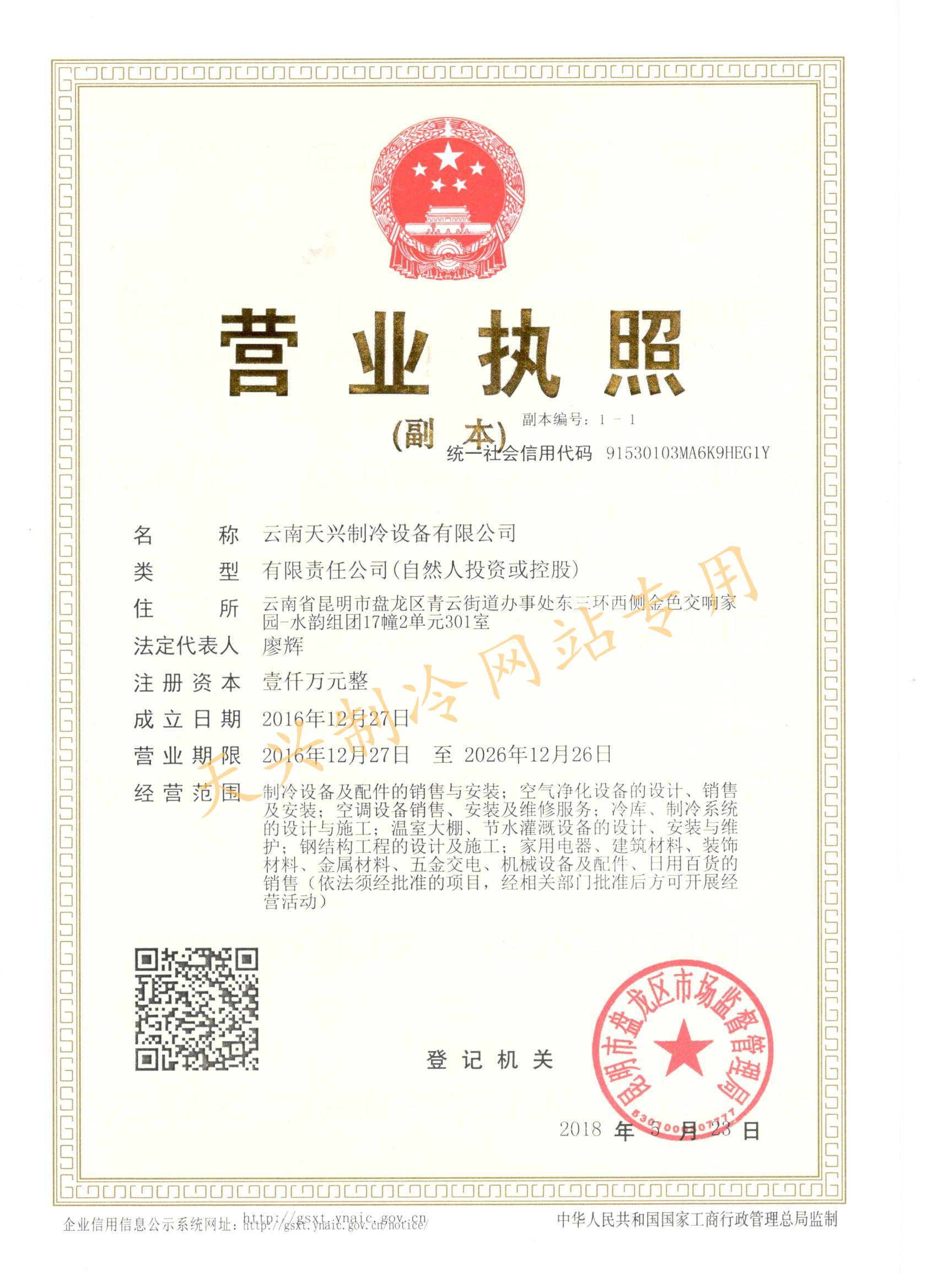 云南天興制冷設備有限公司位于云南省省會城市昆明,是一家專業(yè)從事冷庫設計、生產(chǎn)、安裝及技術服務為一體的綜合型企業(yè)。公司秉承“品質(zhì)為本,信譽第一”的經(jīng)營理念,承建了一大批速凍庫、冷藏庫、保鮮庫、鹽水池、超市展示柜、凈化無菌間等高品質(zhì)工程。